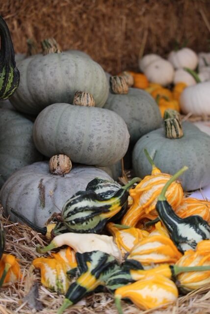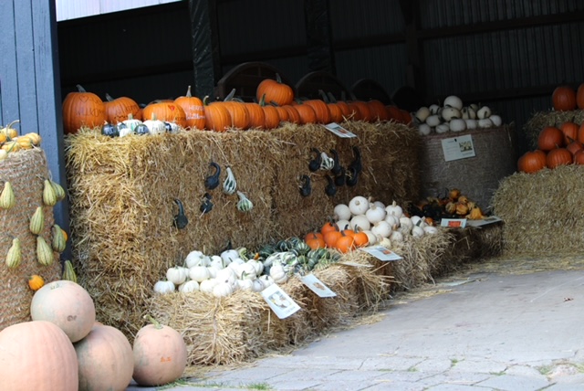 Kürbisse aus eigenem Anbau. Wir bauen seit 20 Jahren mehr als 30 verschiedene Sorten Kürbisse selber an. Speise- Schnitz- und Zierkürbisse in verschiedenen größen, Formen und Farben. Diese gibt es meist ab Mitte/Ende August bei uns in der Kürbisscheune direkt gegenüber vom Hofladen auf Selbstbedinung zu erwerben.